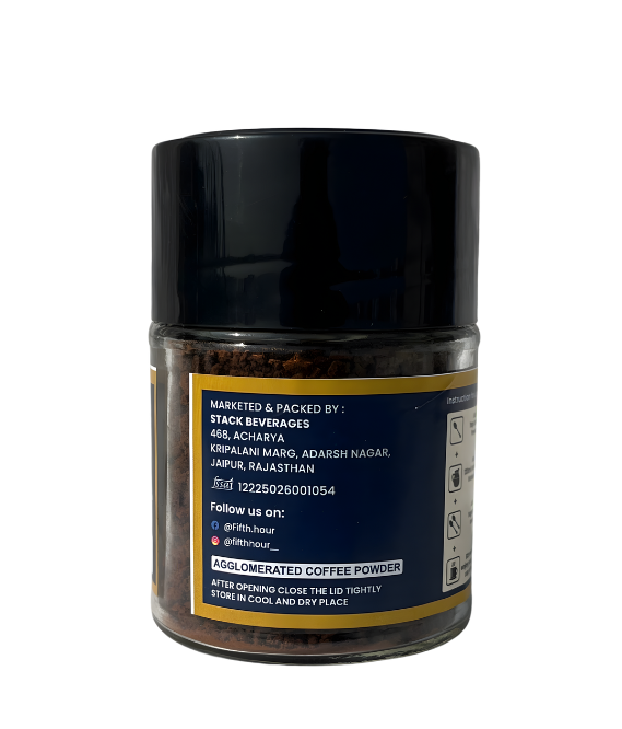 Fifth Hour Instant Coffee is made from carefully selected Pure Arabica beans, known for their naturally smooth, refined flavour. Each granule captures the essence of high-quality coffee, offering a balanced aroma and a satisfying taste profile. With no added flavours and a clean, pure finish, it’s ideal for coffee lovers who want a quick yet premium experience—any hour of the day.